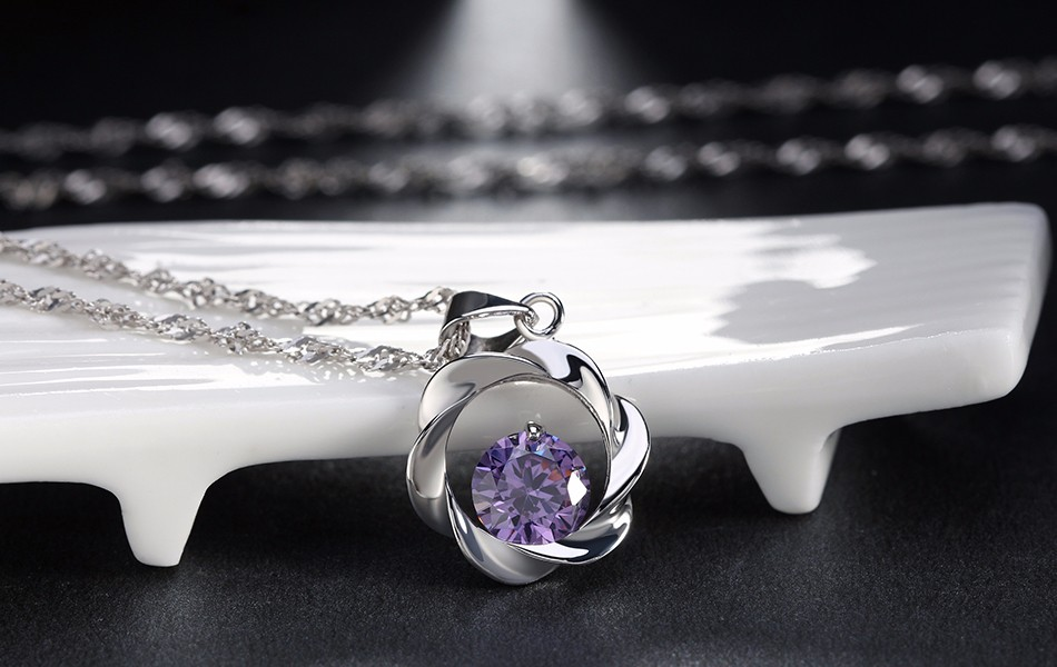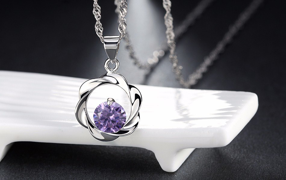 0.5ct Round Cut Purple Amethyst Pendant Flower 14k White Gold Finish NO CHAIN