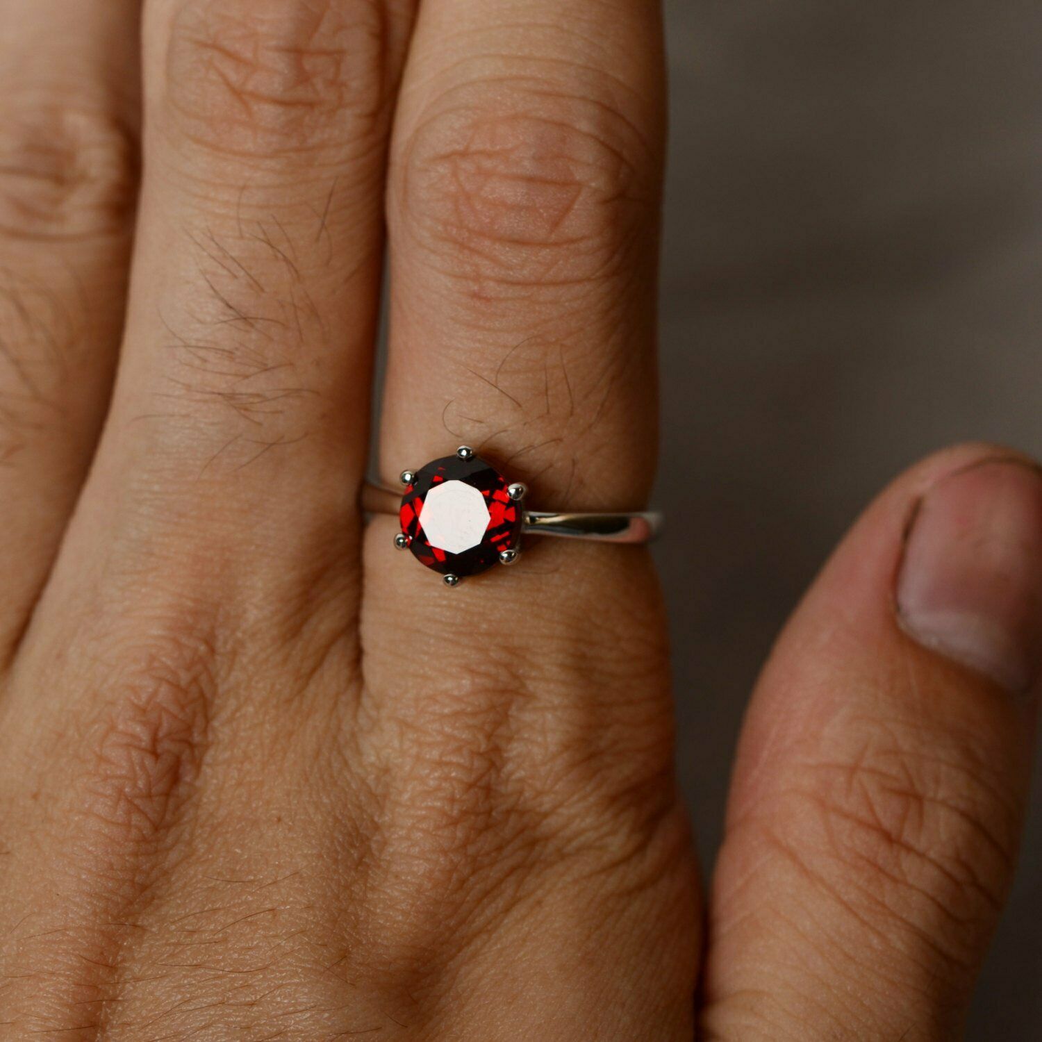 0.5ct Round Cut Red Garnet Engagement Ring 14k White Gold Finish Solitaire Women