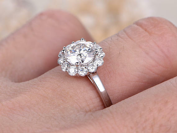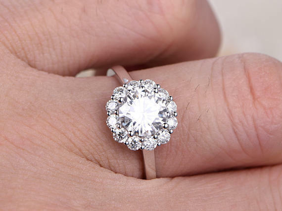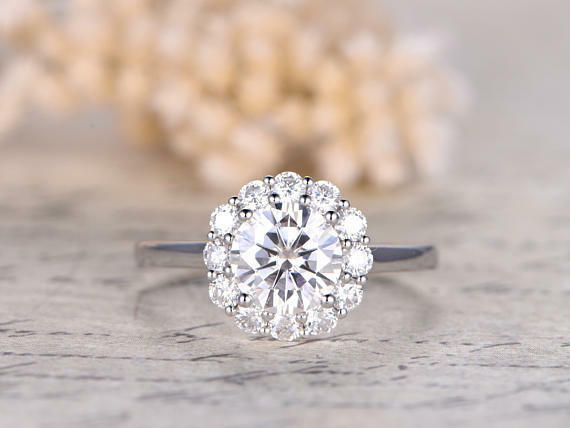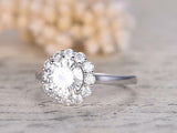 0.5ct Round Cut VVS1 Diamond Floral Cluster Engagement Ring 14k WhiteGold Finish