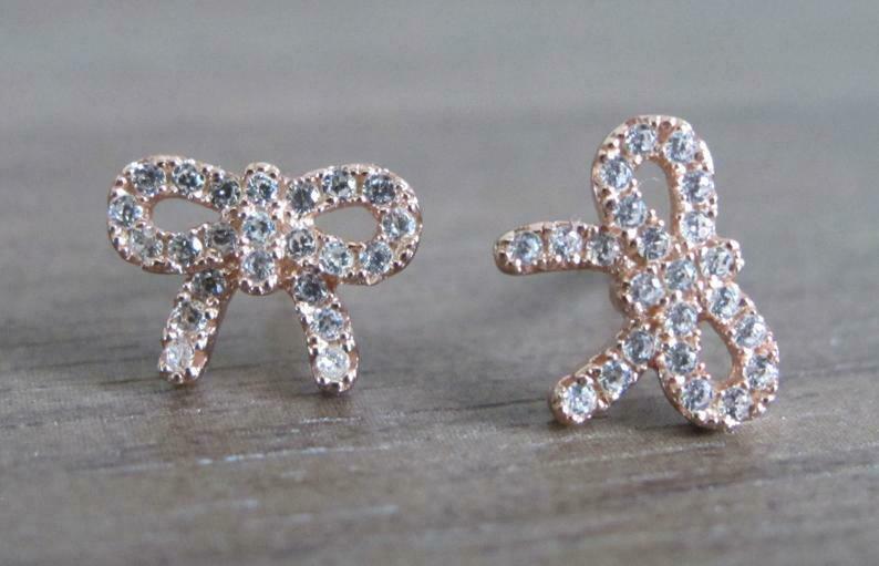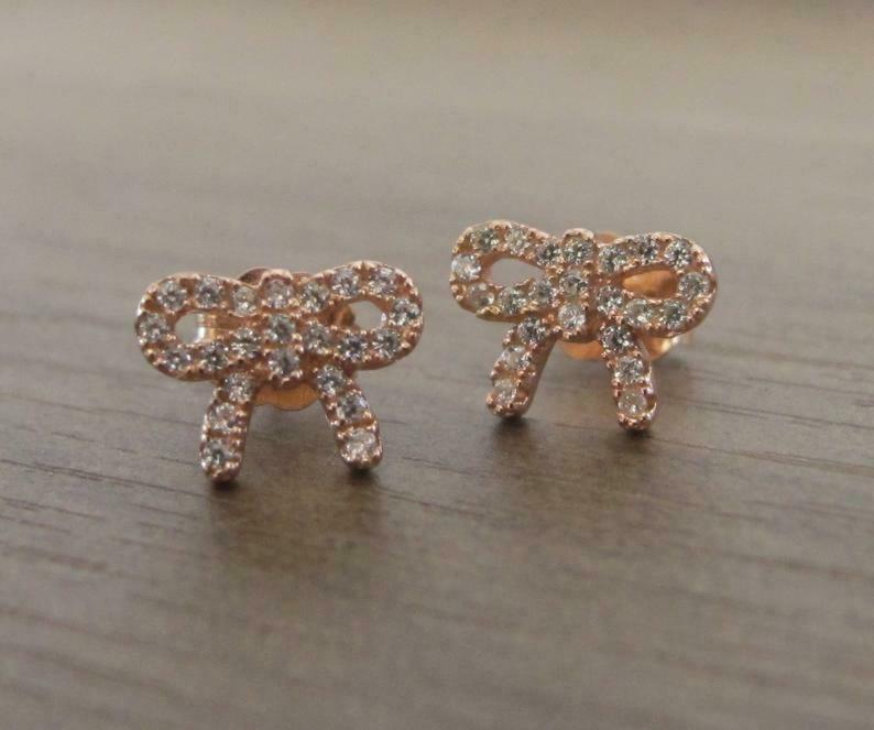 0.5ct Round Cut VVS1D Diamond Bow Knot Stud Earrings Women 14k Rose Gold Finish