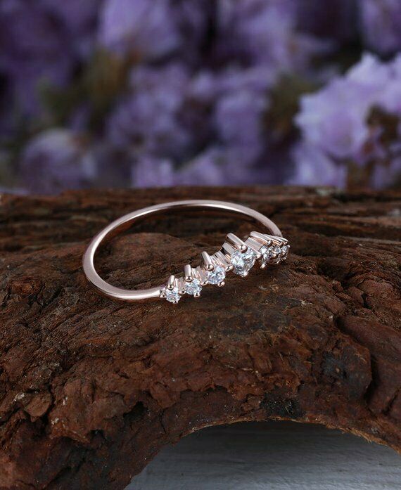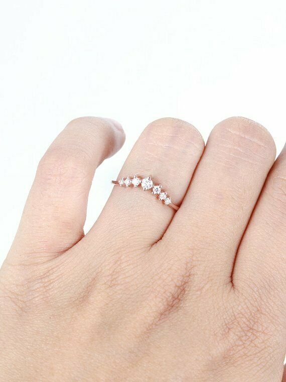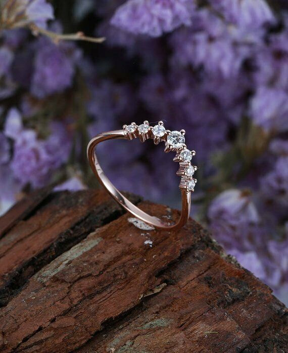0.5ct Round Cut VVS1D Diamond Engagement Ring 14k Rose Gold Finish Curved Shape