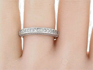 0.5ct Round Diamond Half Eternity Milgrain Wedding Ring Band 14k White Gold Over