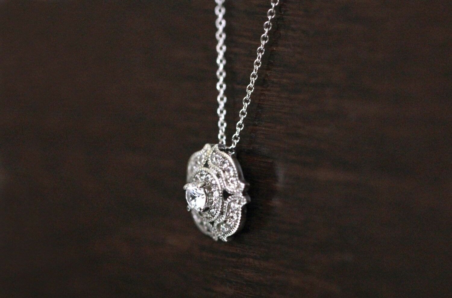 0.5ct Round Diamond Milgrain Halo Bridal Pendant 14k White Gold Finish NO CHAIN