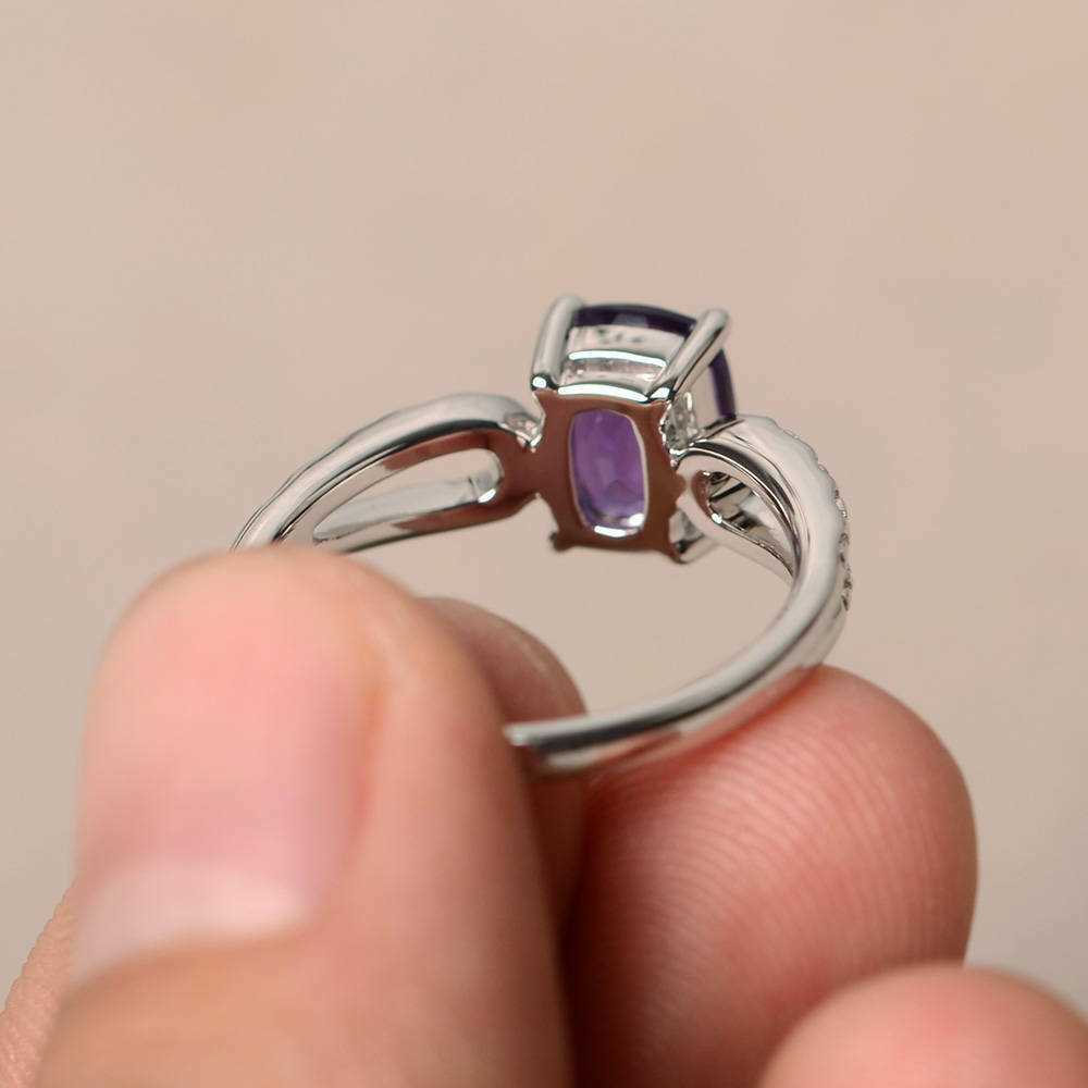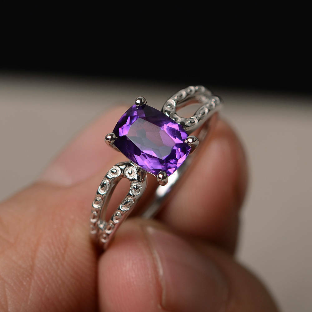 0.6ct Cushion Cut Purple Amethyst Engagement Ring 14k WhiteGold Finish Solitaire