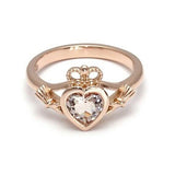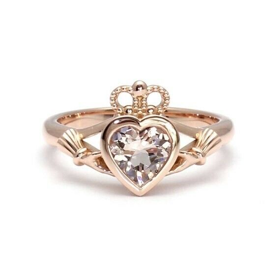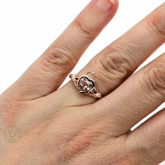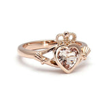 0.6ct Heart Cut Peach Morganite Engagement Ring 14k Rose Gold Finish Claddagh