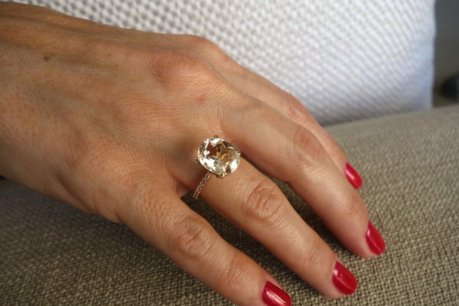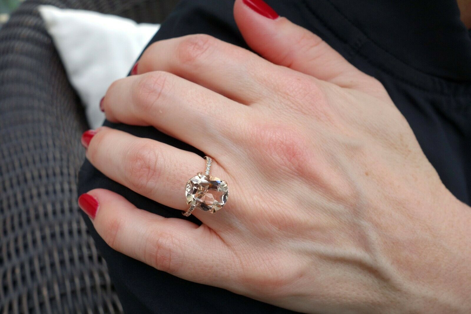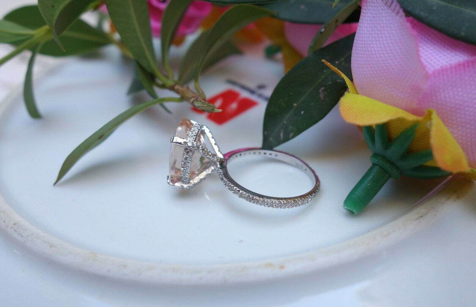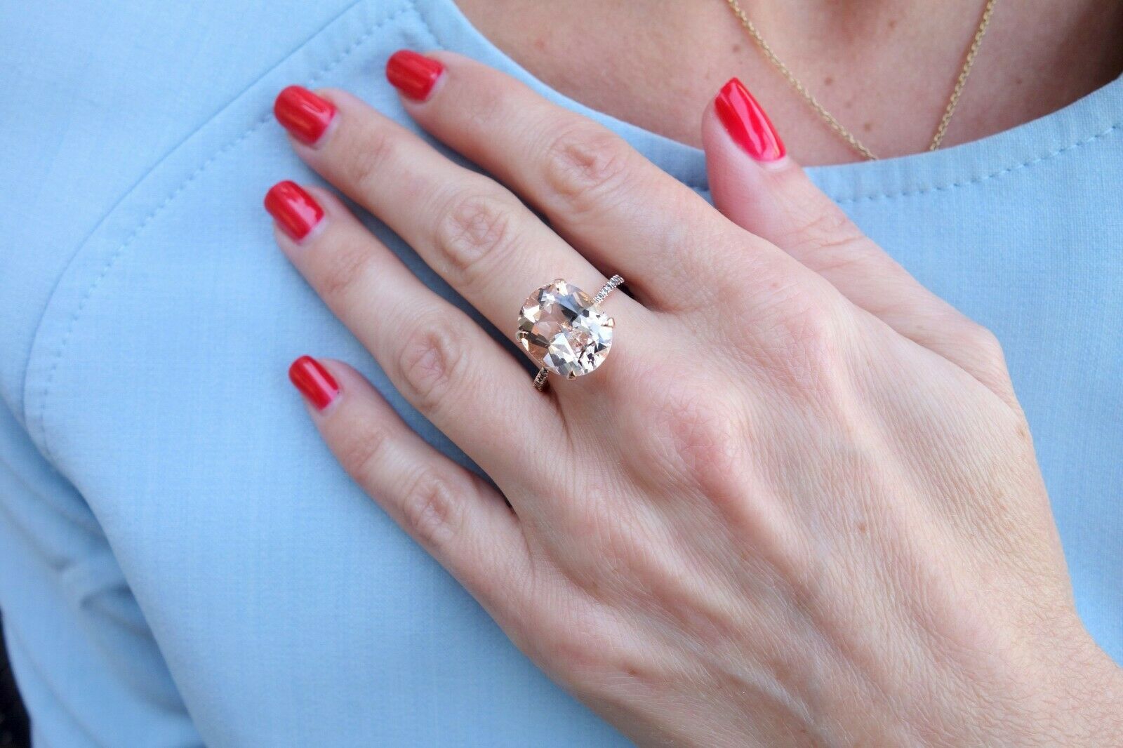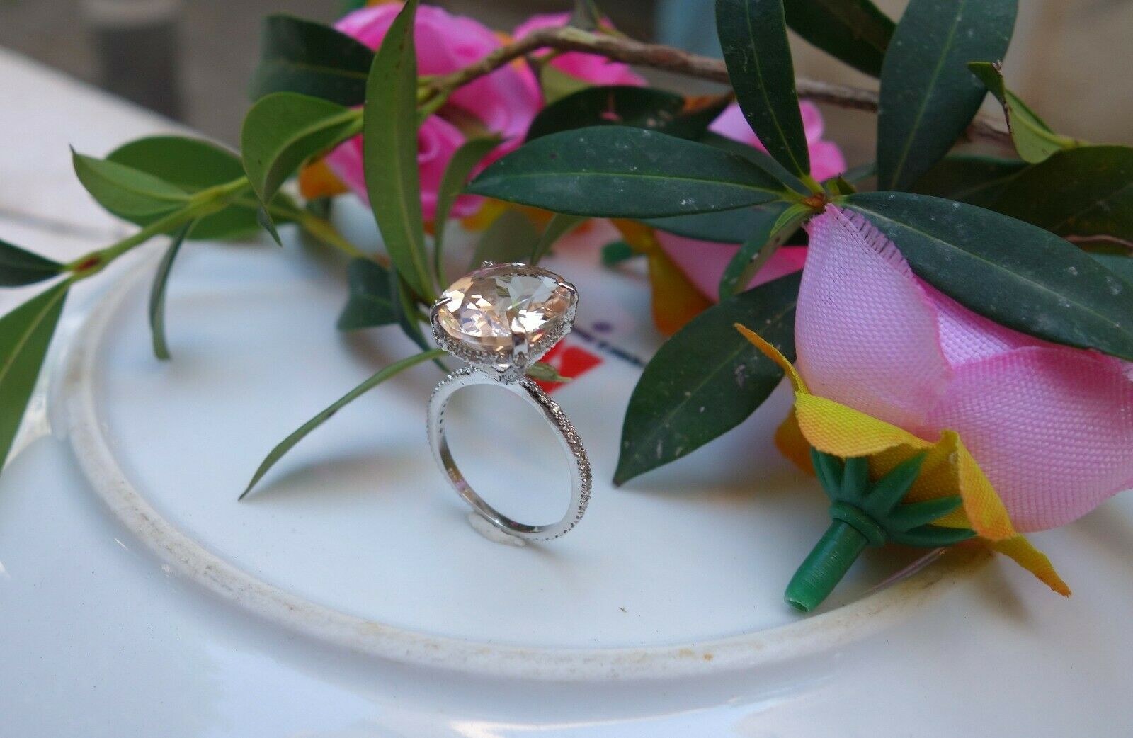 0.6ct Oval Cut Peach Morganite Engagement Ring 14k White Gold Finish Solitaire