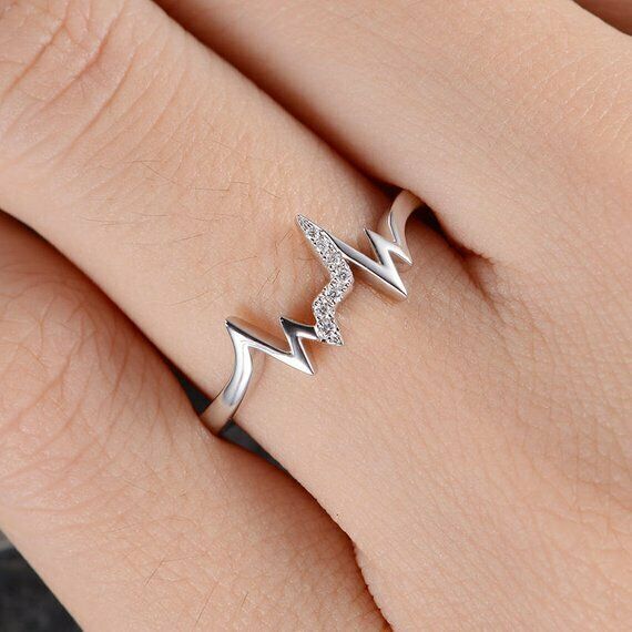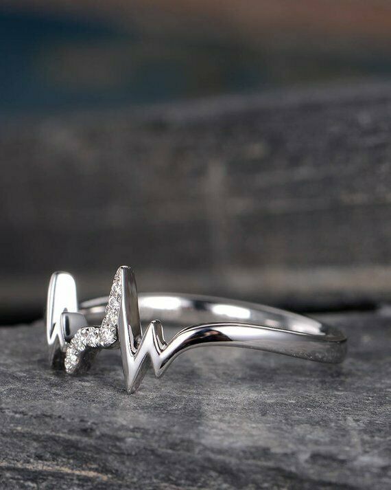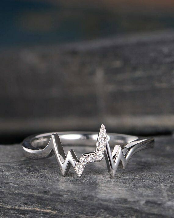 0.6ct Round Cut Diamond Engagement Ring 14k White Gold Finish Heartbeat Design
