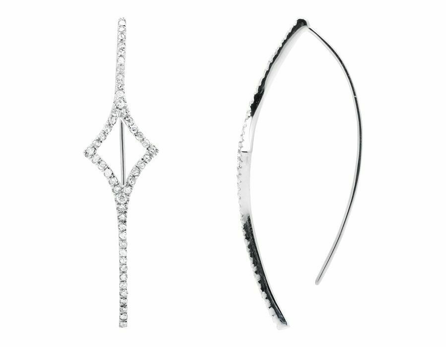 0.6ct Round Cut VVS1D Diamond One Row Threader Hoop Earrings 14k White Gold Over