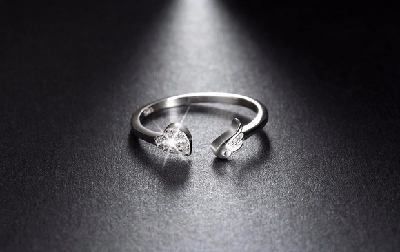 0.6ct Round Diamond Engagement Ring 14k White Gold Over Heart & Wing Open Design
