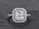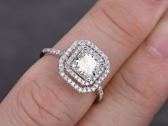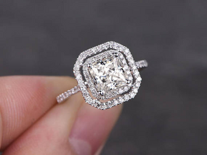 0.75ct Princess Cut Diamond Engagement Ring 14k White Gold Finish Double Halo