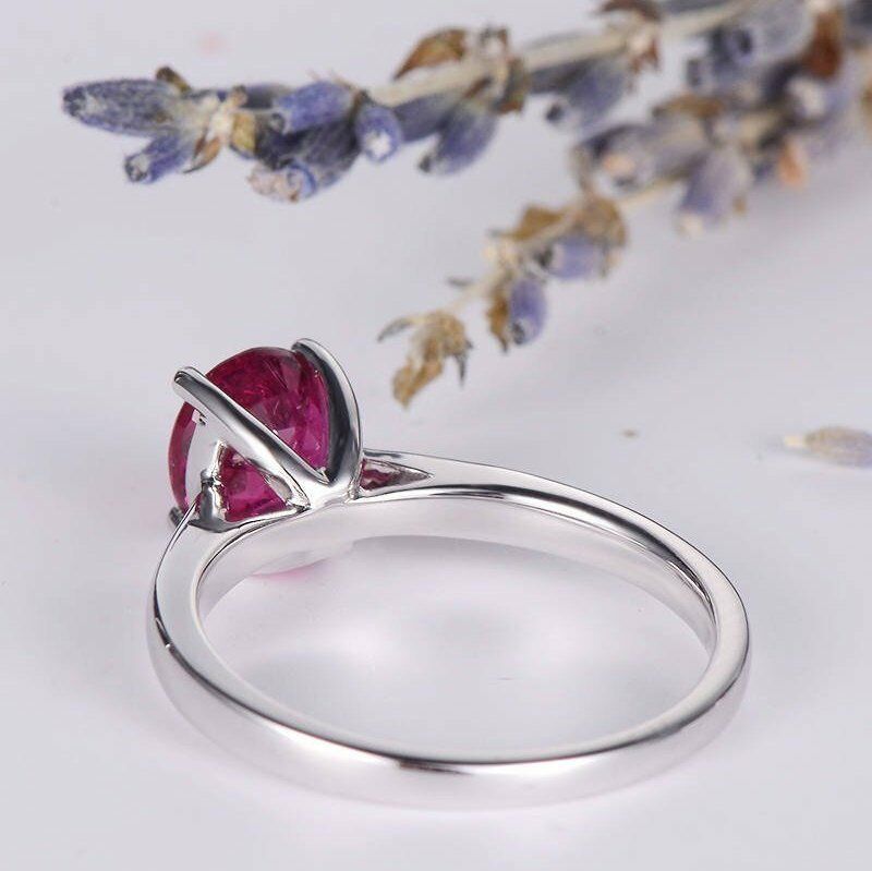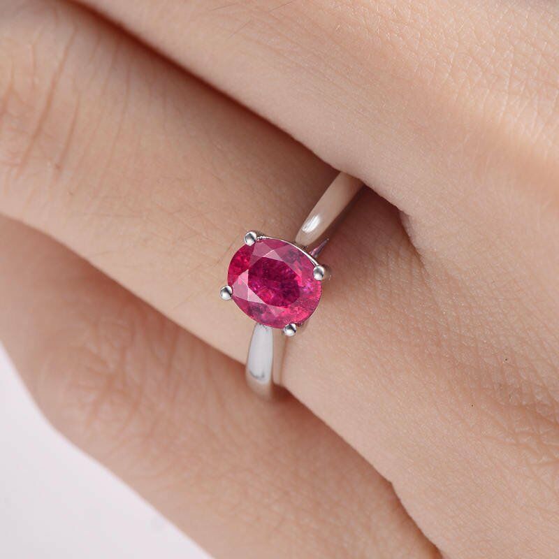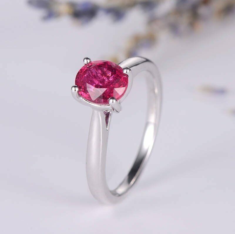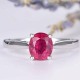 0.7ct Oval Cut Pink Ruby 4 Prong Solitaire Engagement Ring 14k White Gold Finish