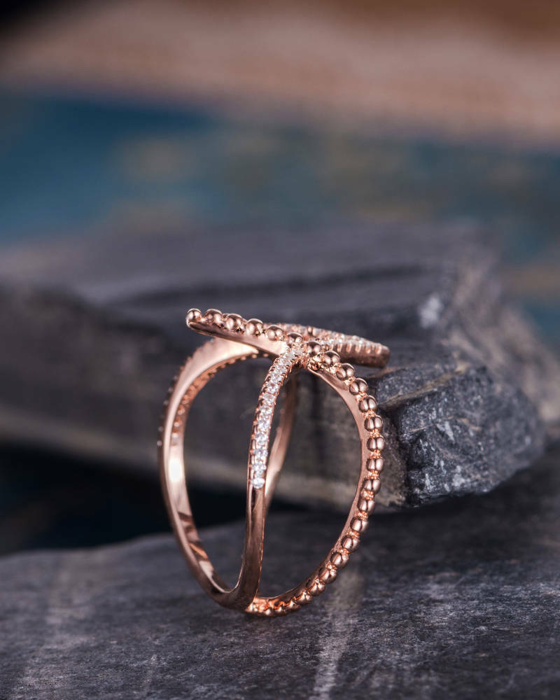 0.7ct Round Cut Diamond Engagement Ring 14k Rose Gold Finish Criss Cross Unique