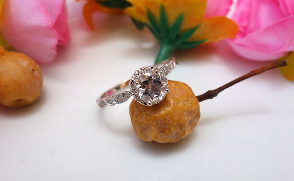 0.7ct Round Cut Peach Morganite Engagement Ring 14k White Gold Finish Solitaire