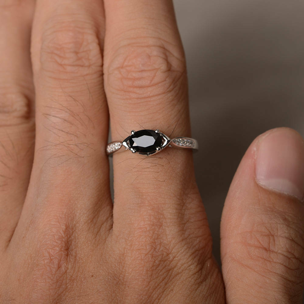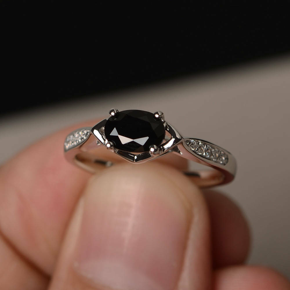 0.8ct Oval Black Diamond Engagement Ring 14k WhiteGold Over Diamond Accent Women