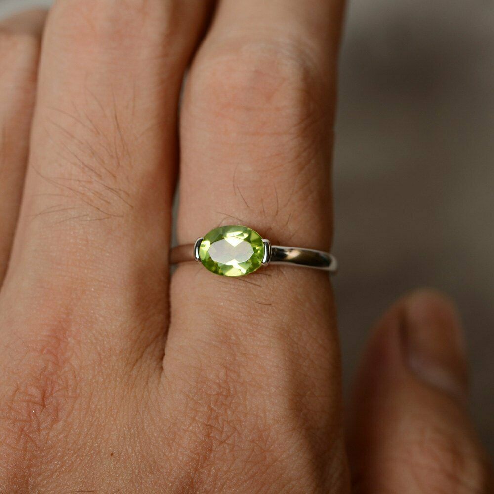 0.8ct Oval Cut Green Peridot Engagement Ring 14k White Gold Finish Solitaire