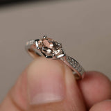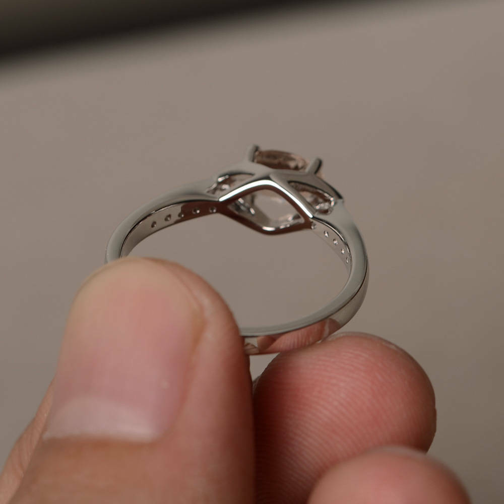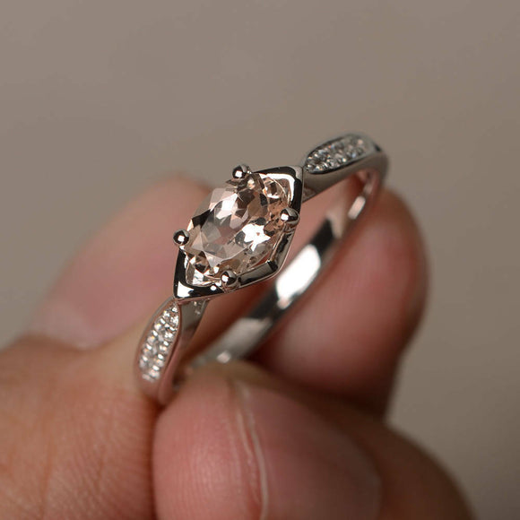 0.8ct Oval Cut Peach Morganite Diamond Engagement Ring 14k White Gold Finish