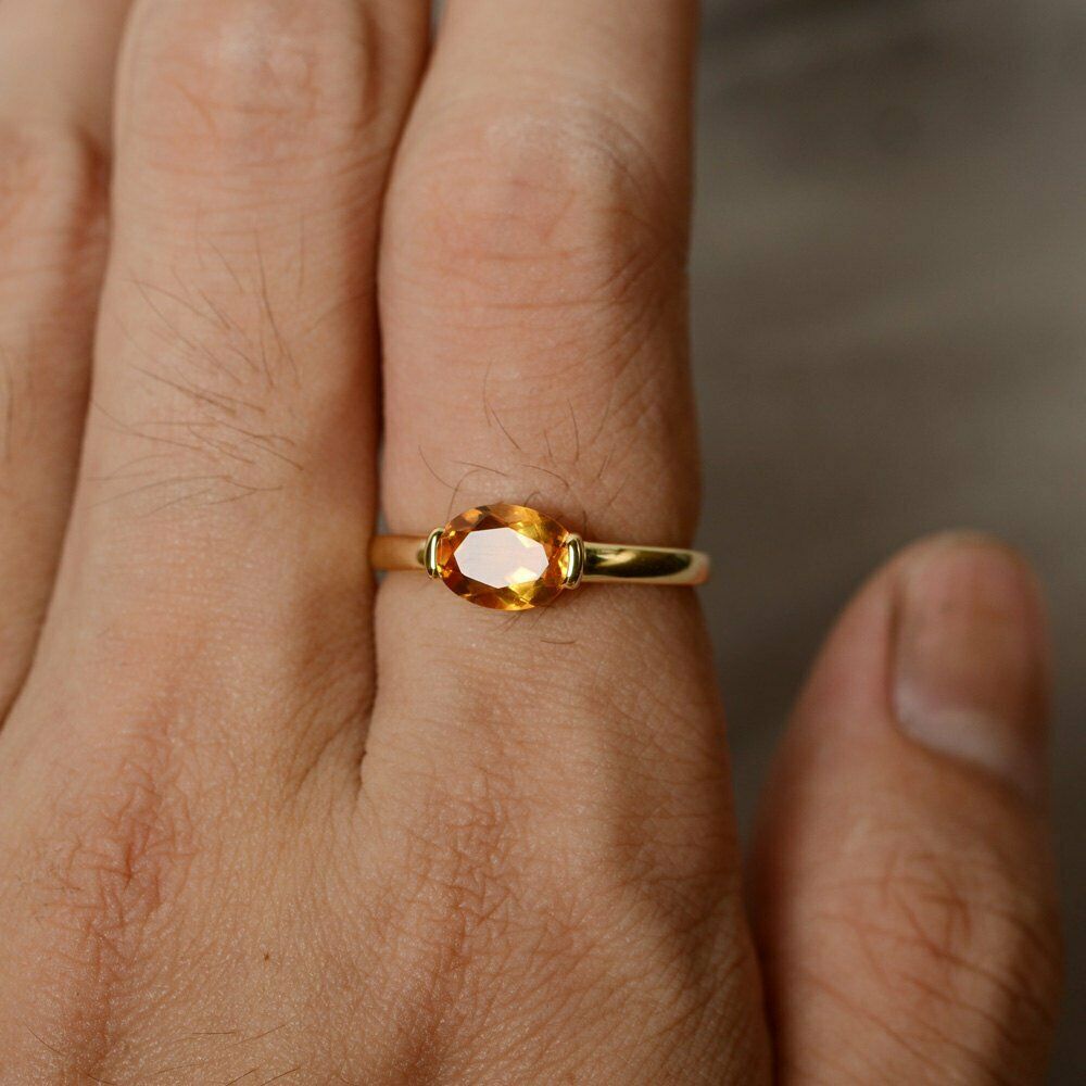 0.8ct Oval Cut Yellow Citrine Engagement Ring 14k Yellow Gold Finish Solitaire