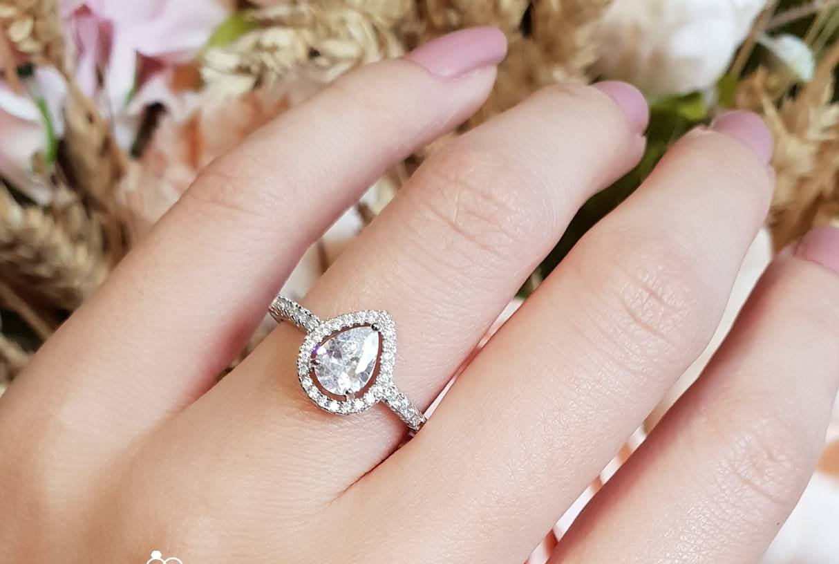 0.8ct Pear Cut VVS1D Diamond Engagement Ring 14k White Gold Finish Halo Teardrop