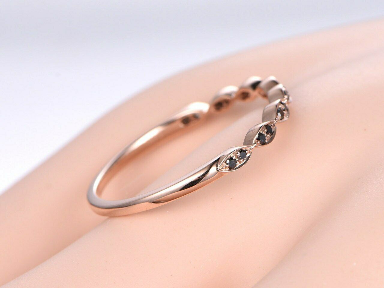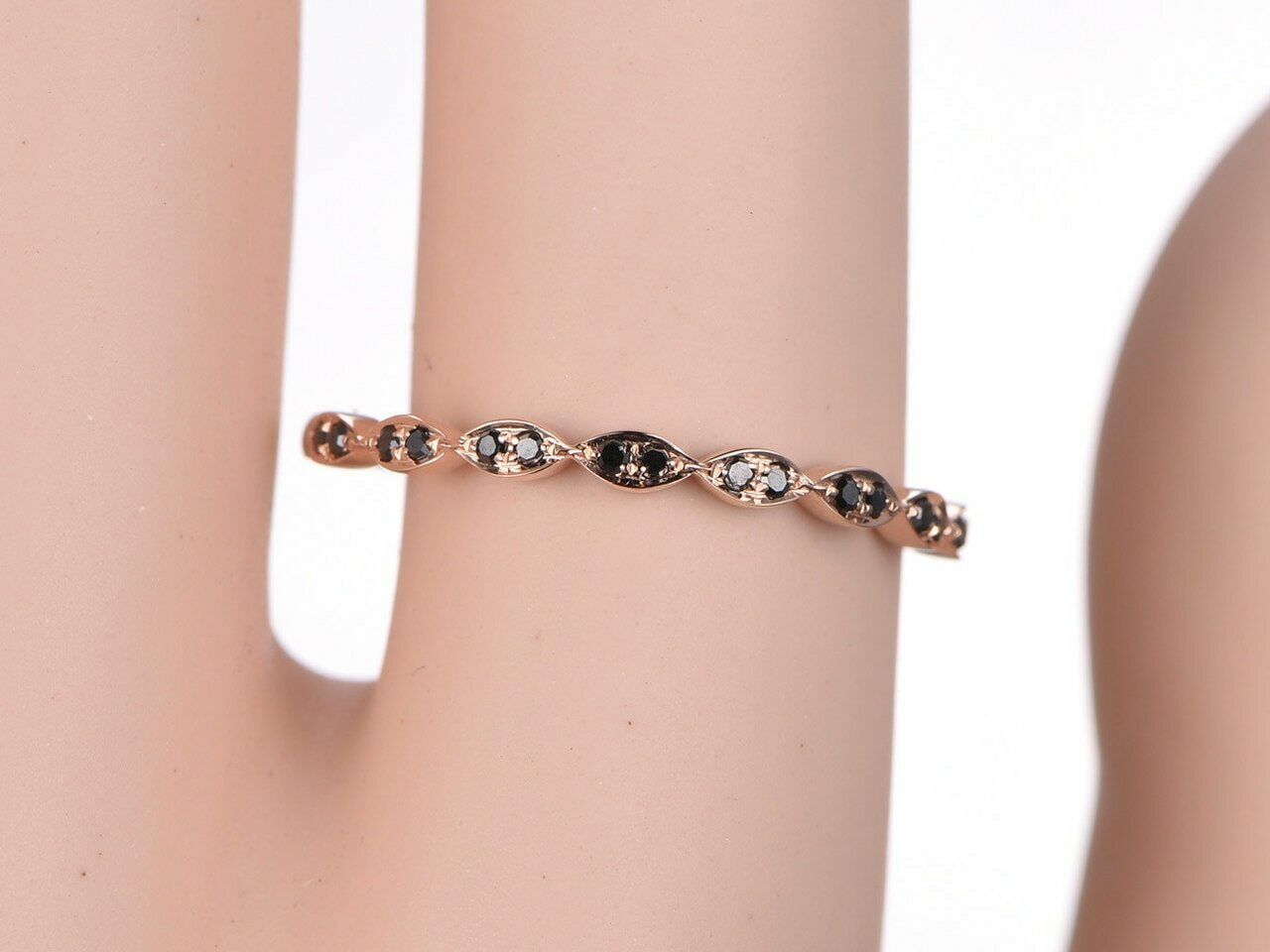0.8ct Round Cut Black Diamond Wedding Band Half Eternity 14k Rose Gold Finish