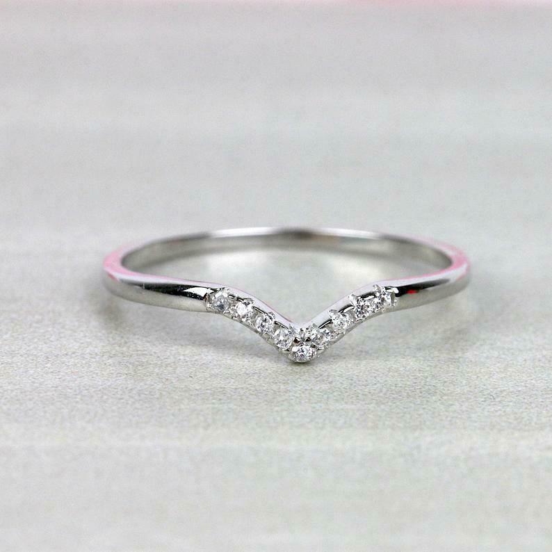 0.8ct Round Cut Diamond Wedding Band V Shaped Petite Curved 14k White Gold Over