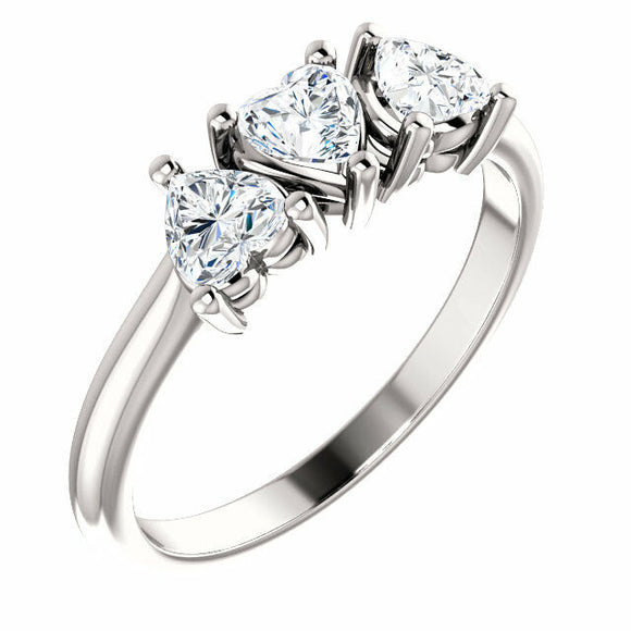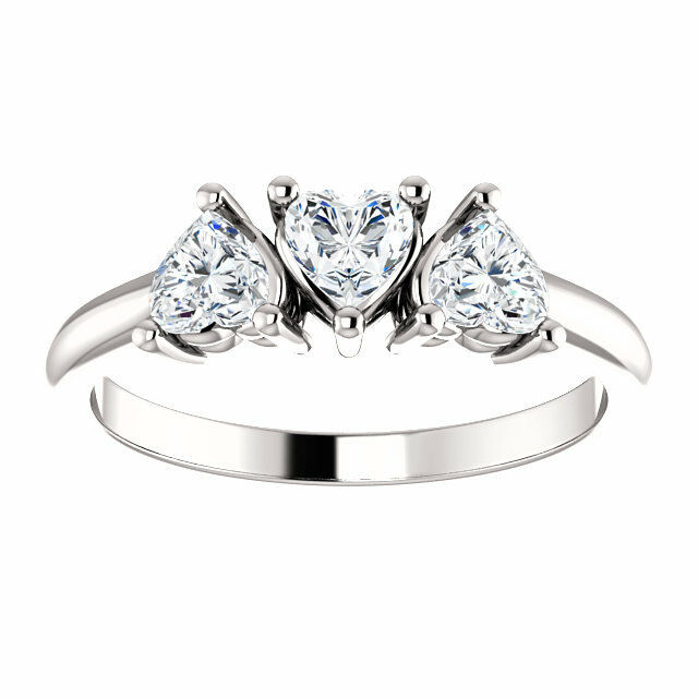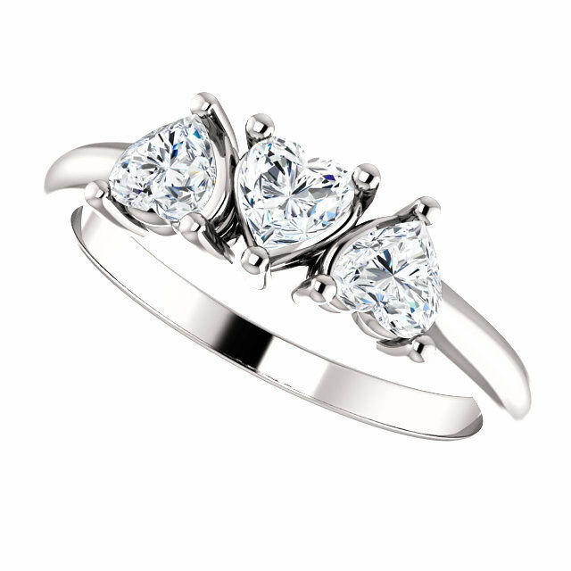0.9ct Heart Cut Diamond 3 Stone Love Anniversary Band 14k White Gold Finish