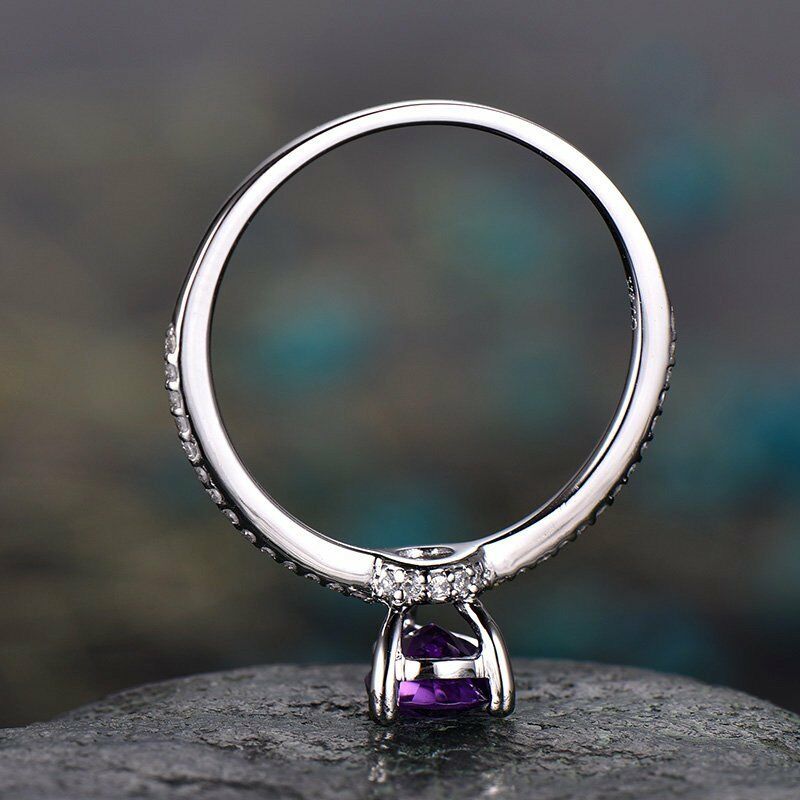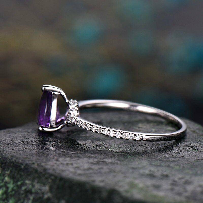 0.9Ct Pear Cut Purple Amethyst Solitaire Engagement Ring 18K White Gold Finish