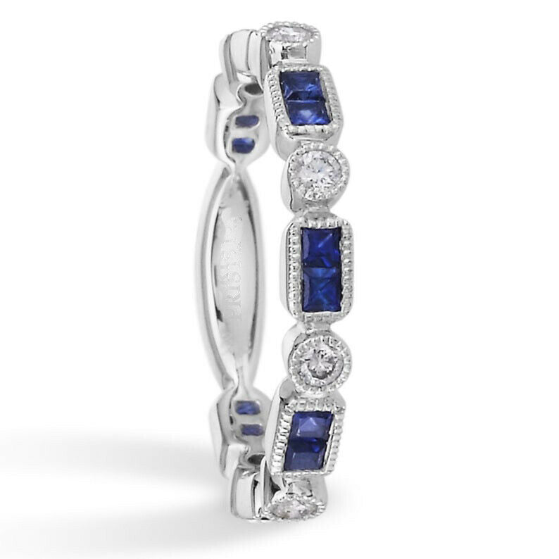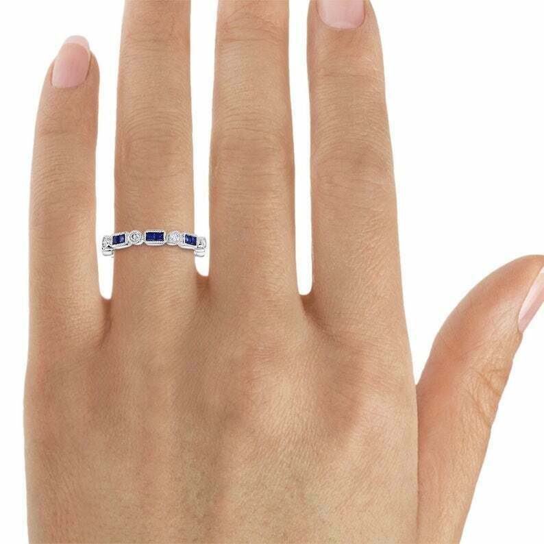 0.9ct Princess Cut Blue Sapphire Wedding Band Anniversary 14k White Gold Finish