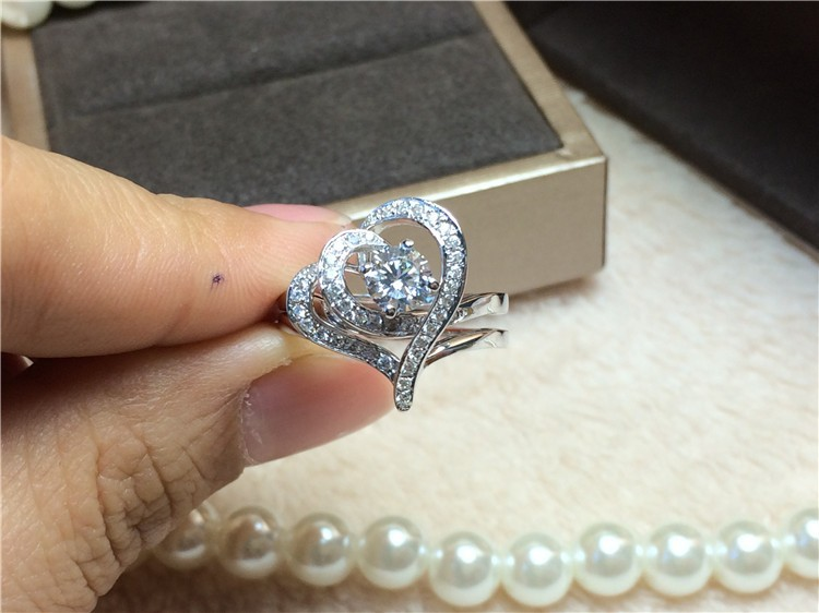 0.9ct Round Cut Diamond Engagement Ring 14k White Gold Finish Flower Heart Shape