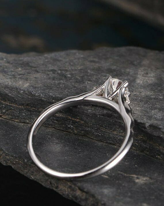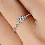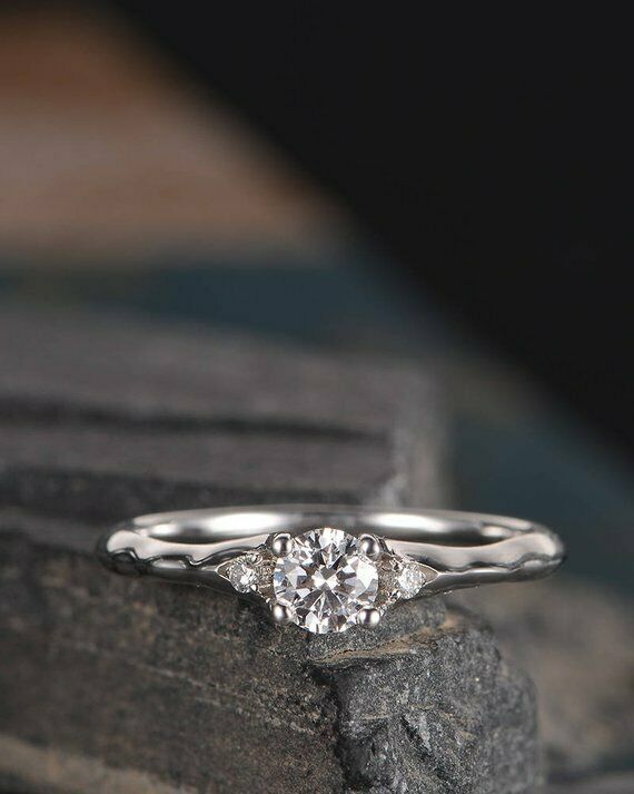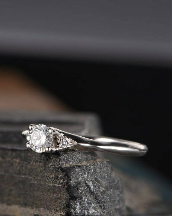 0.9ct Round Cut VVS1D Diamond Engagement Ring 14k White Gold Finish Three Stone