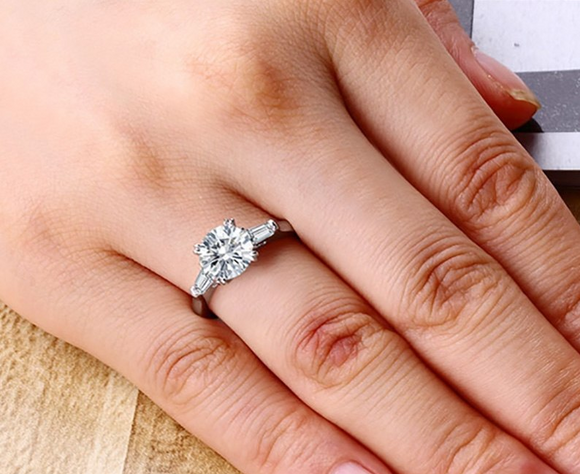 0.9ct Round Diamond Engagement Ring 14k White Gold Finish Trilogy Promise Women
