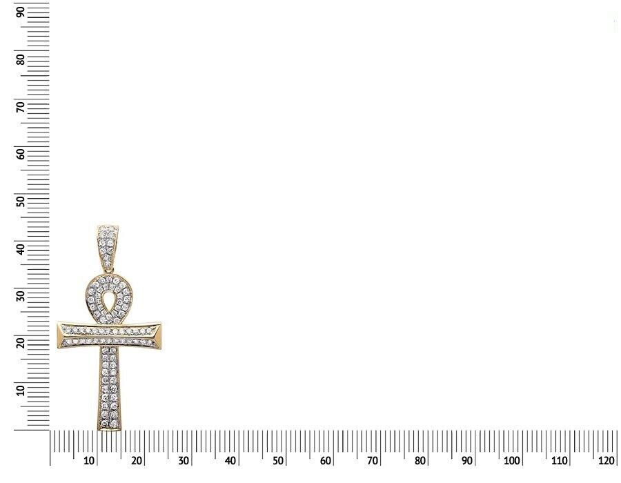 1.12ct Round Cut VVS1D Diamond Pendant Wood Log Ankh Cross 14k YellowGold Finish