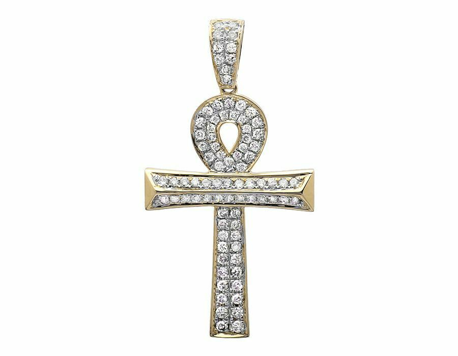 1.12ct Round Cut VVS1D Diamond Pendant Wood Log Ankh Cross 14k Yellow Gold Finish