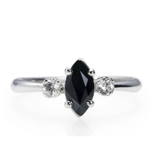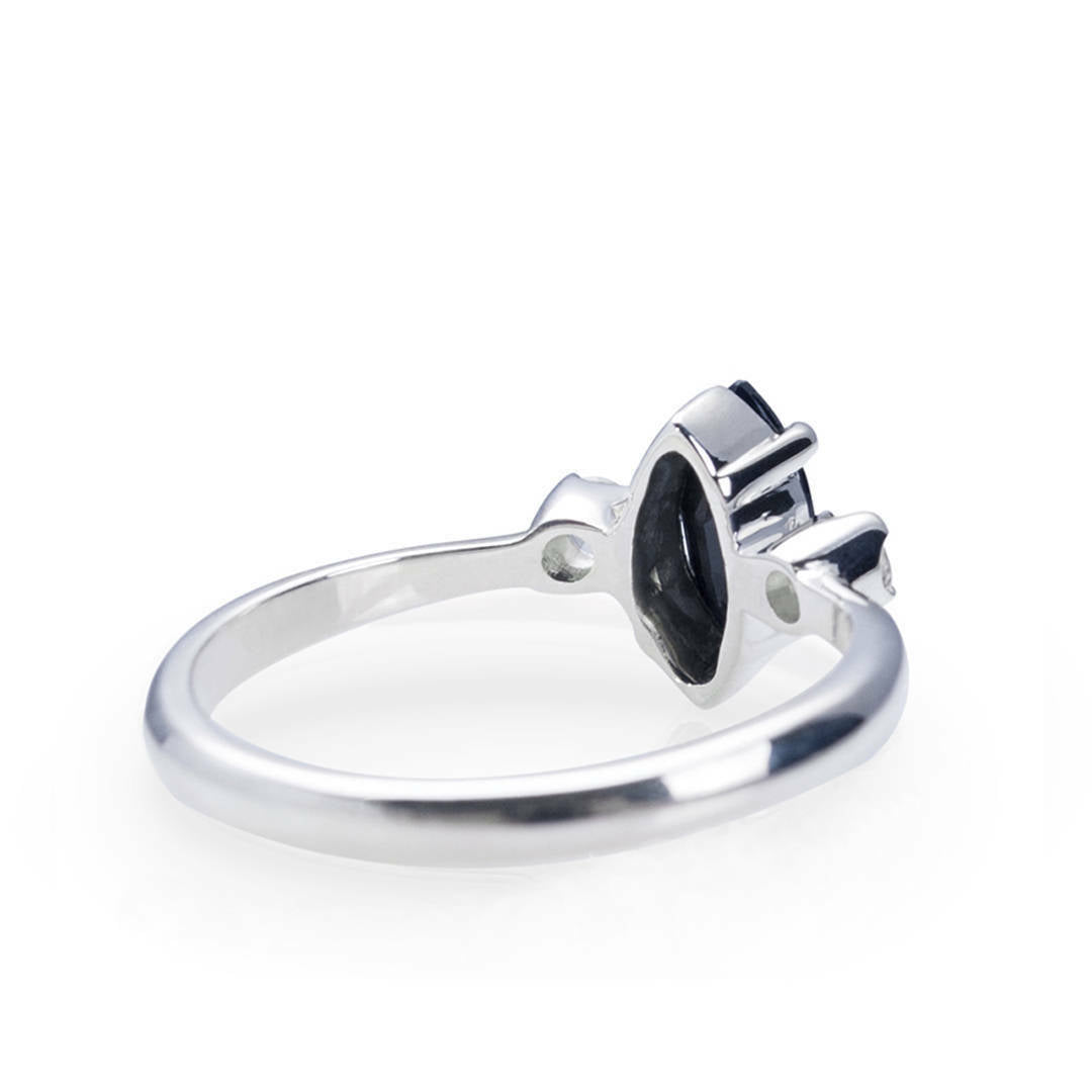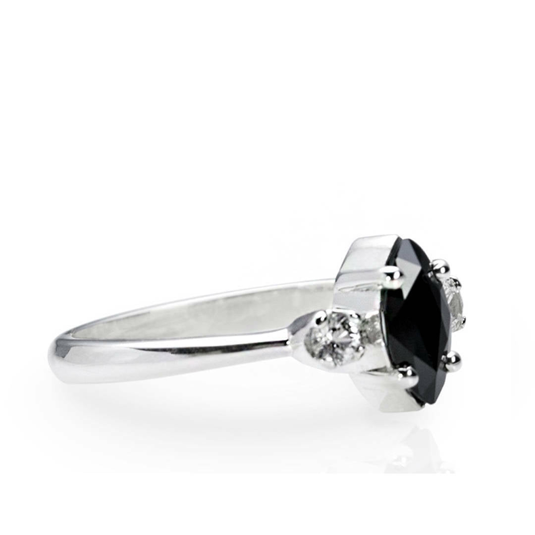 1.1ct Marquise Cut Black Diamond Trilogy Engagement Ring 14k White Gold Finish