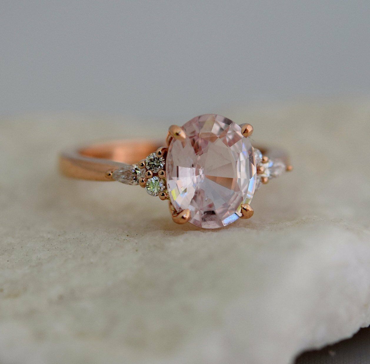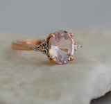 1.1ct Oval Cut Peach Morganite Unique Trendy Engagement Ring 14k Rose Gold Over