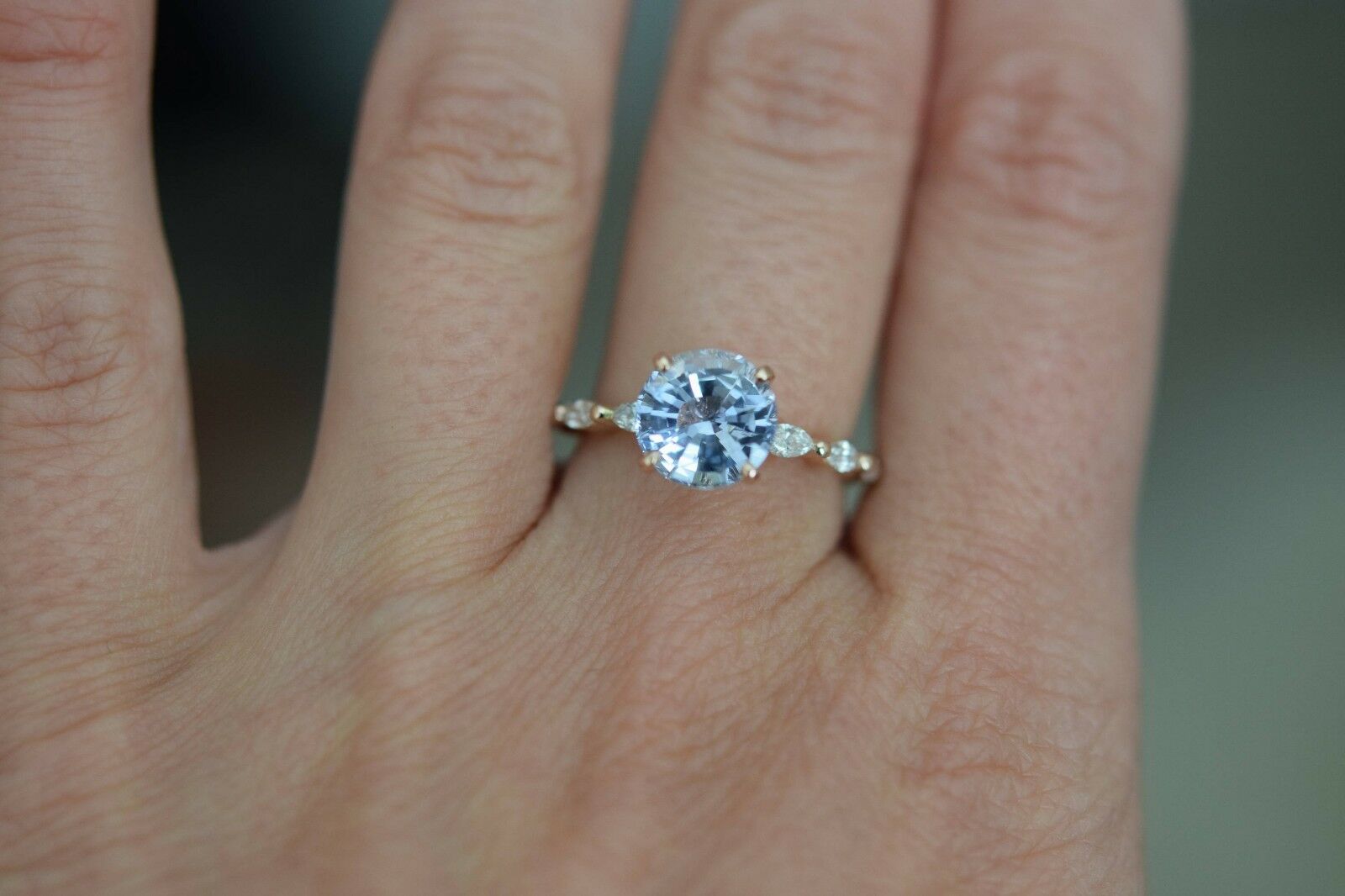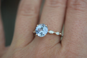 1.1ct Round Blue Aquamarine Diamond Accent Engagement Ring 18k Rose Gold Finish