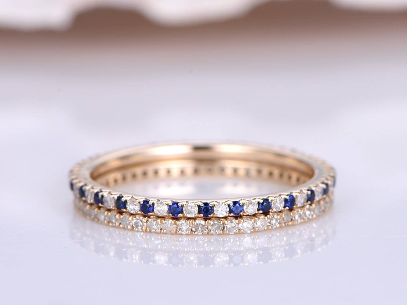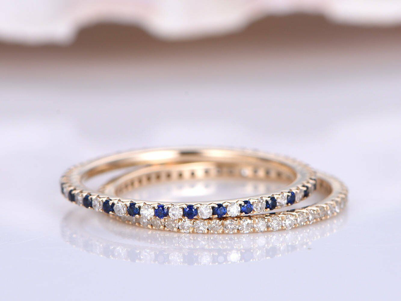 1.1ct Round Cut Blue Sapphire Wedding Band Engagement Ring 14k Rose Gold Finish