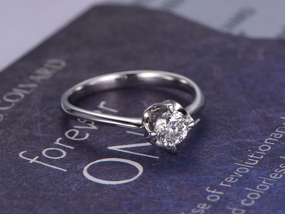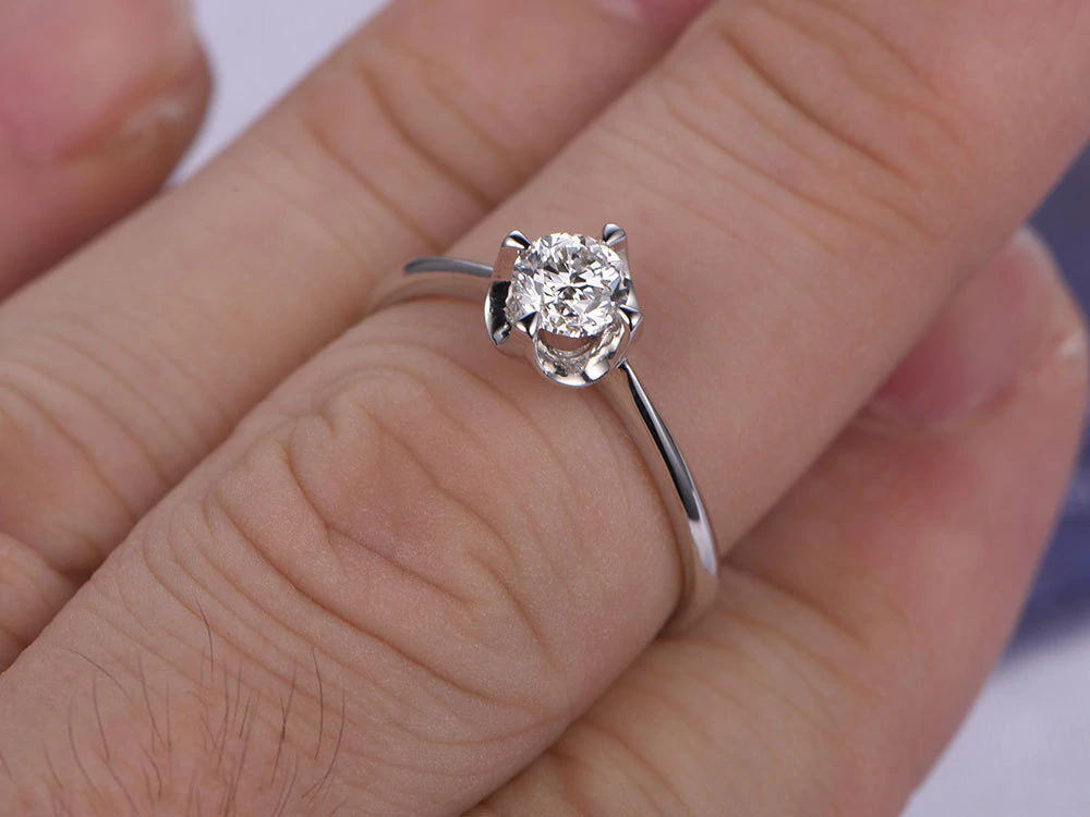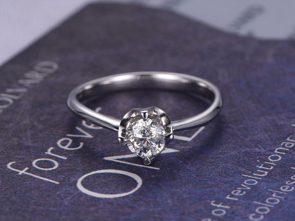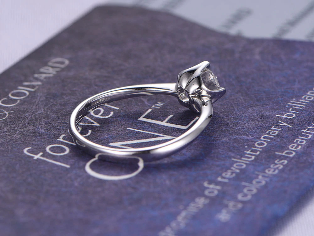 1.1ct Round Cut Diamond Engagement Ring 18k White Gold Finish Solitaire Wedding