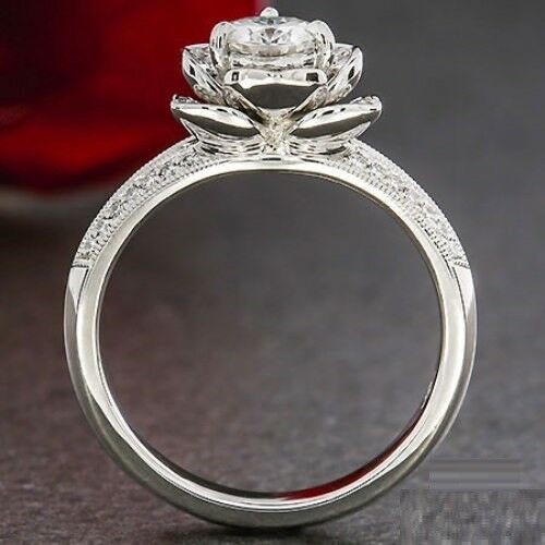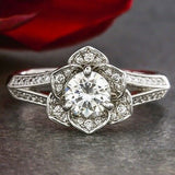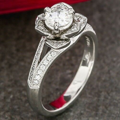 1.1ct Round Cut Diamond Floral Solitaire Engagement Ring 14k White Gold Finish