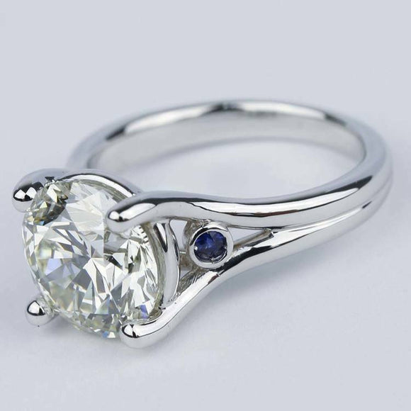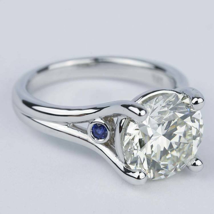 1.1Ct Round Cut Diamond Sapphire Split Shank Solitaire Ring 14K White Gold Over