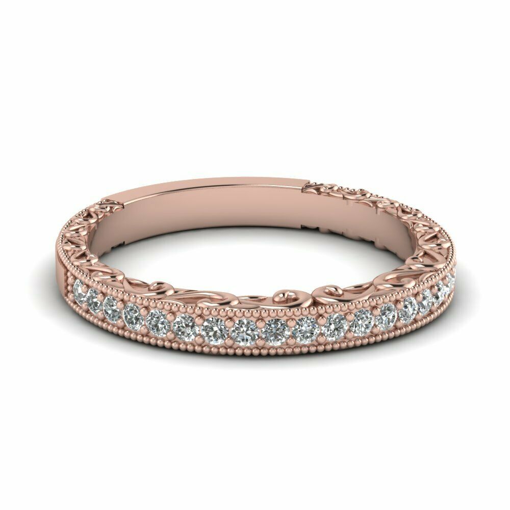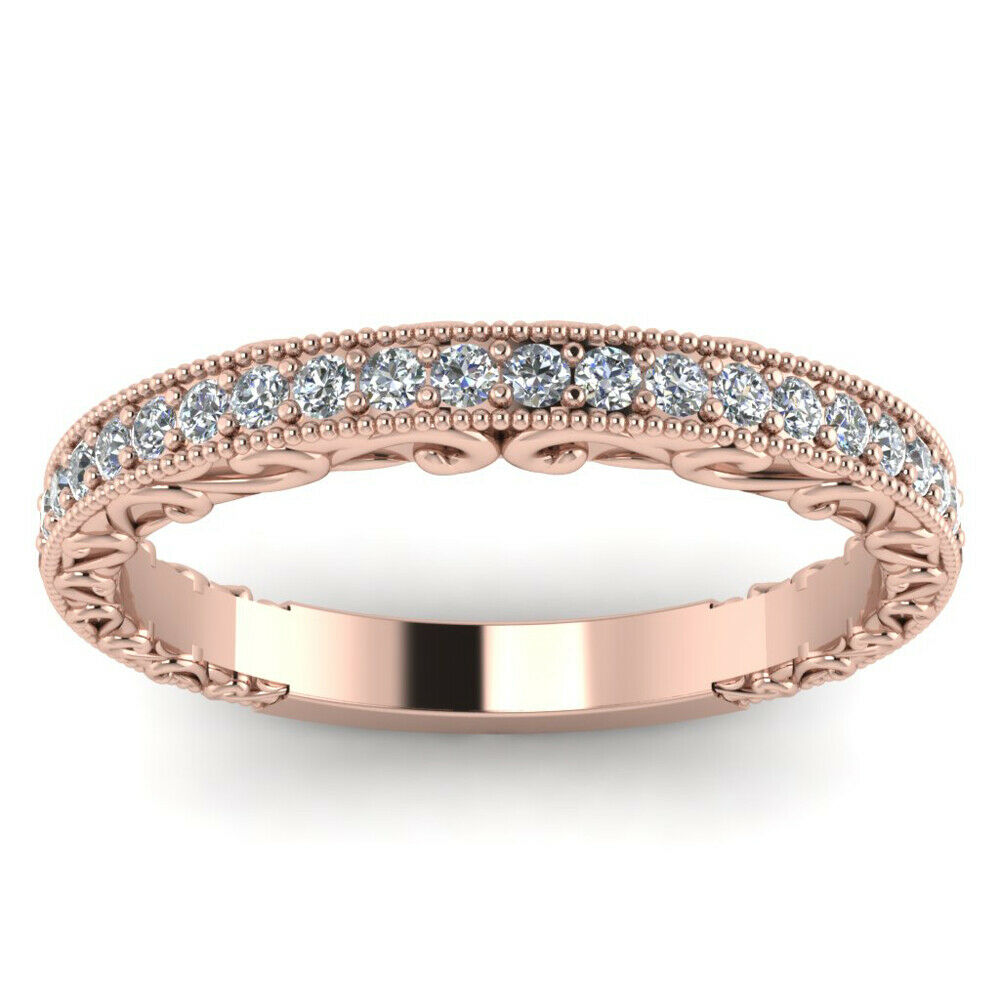 1.1ct Round Cut Diamond Vintage Half Eternity Wedding Band 14k Rose Gold Finish