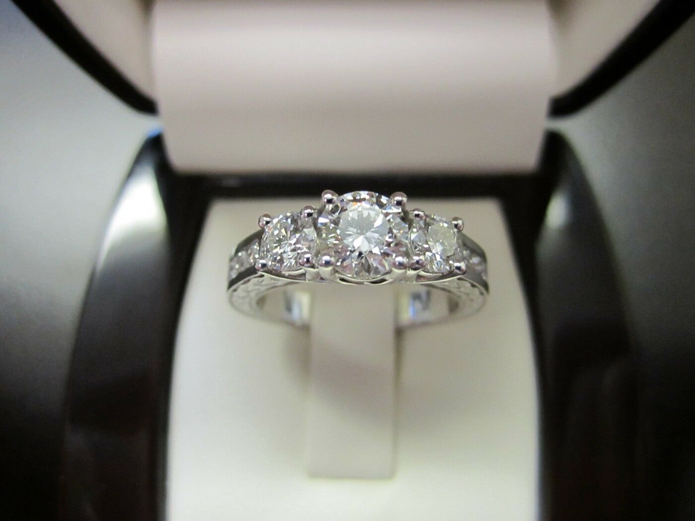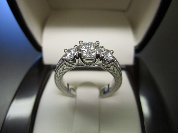 1.2ct 3 Round Cut Diamond Vintage Antique Engagement Ring 14k White Gold Finish