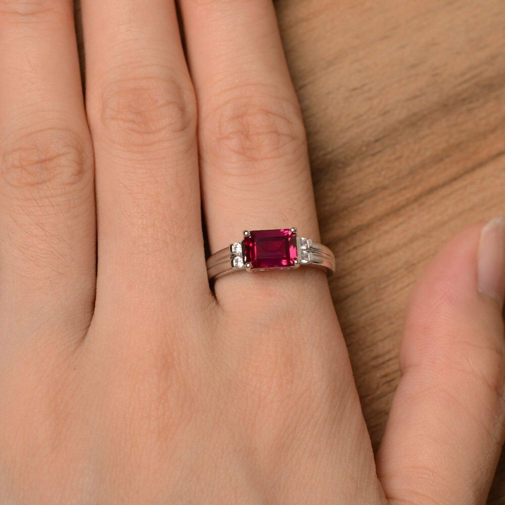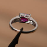 1.2ct Baguette Cut Pink Ruby Solitaire Engagement Ring 14k White Gold Finish