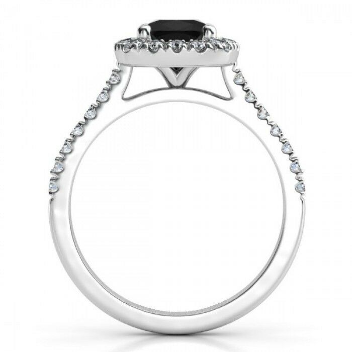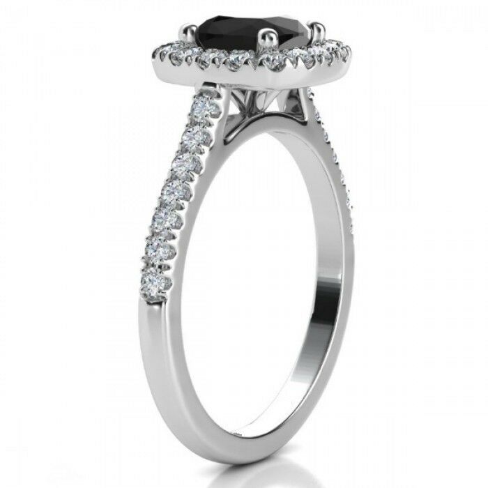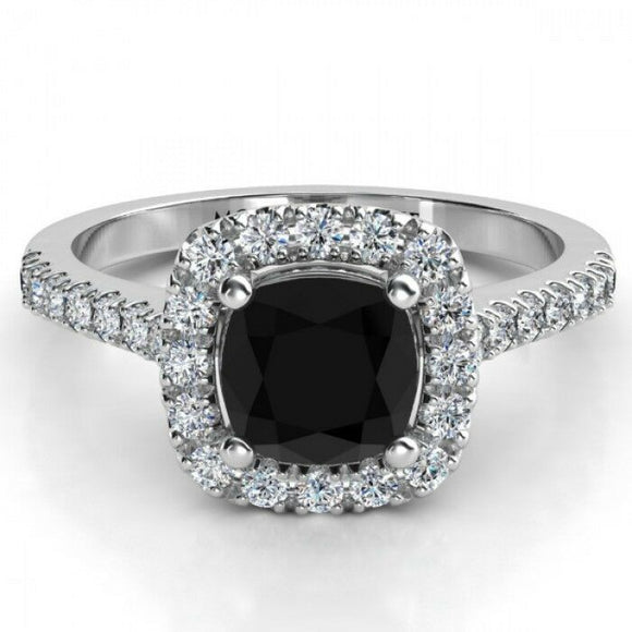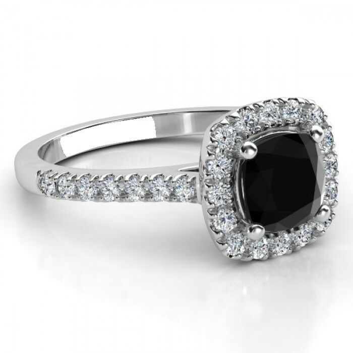 1.2ct Cushion Cut Black Diamond Solitaire Engagement Ring 14k White Gold Finish