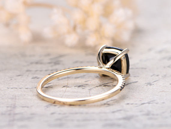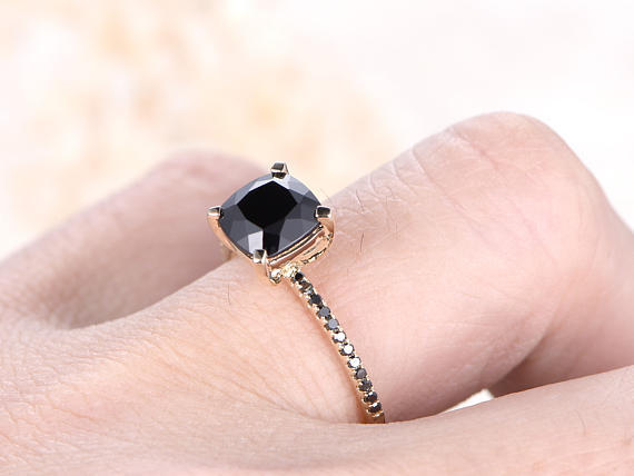 1.2ct Cushion Cut Black Diamond Solitaire with Accents Ring 14k Yellow Gold Over