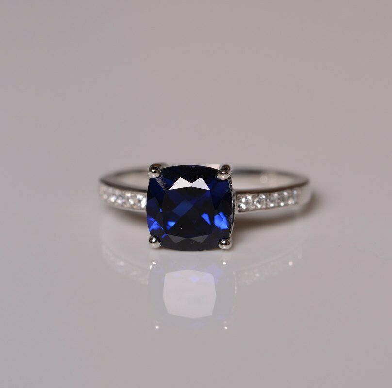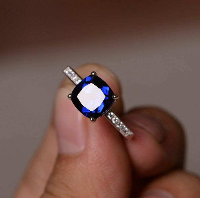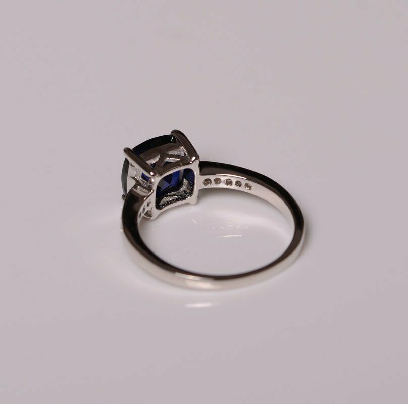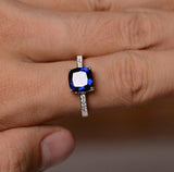 1.2ct Cushion Cut Blue Sapphire Engagement Ring 14k White Gold Finish Solitaire