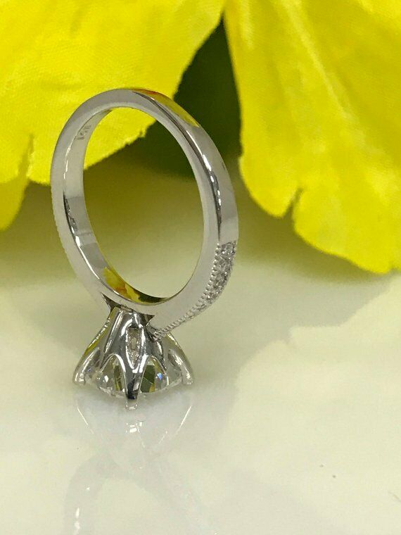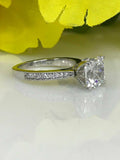 1.2ct Cushion Cut Diamond Accent Solitaire Engagement Ring 14k White Gold Finish