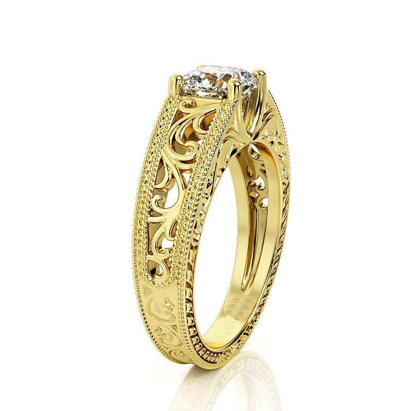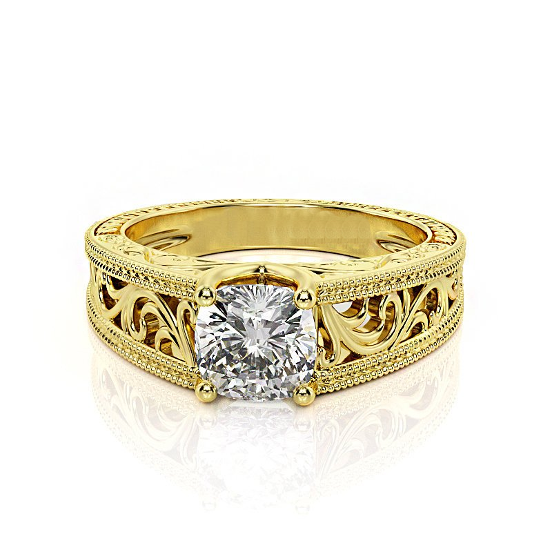 1.2ct Cushion Cut Diamond Engagement Ring 14k Yellow Gold Finish Antique Vintage