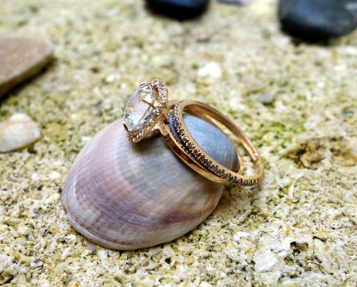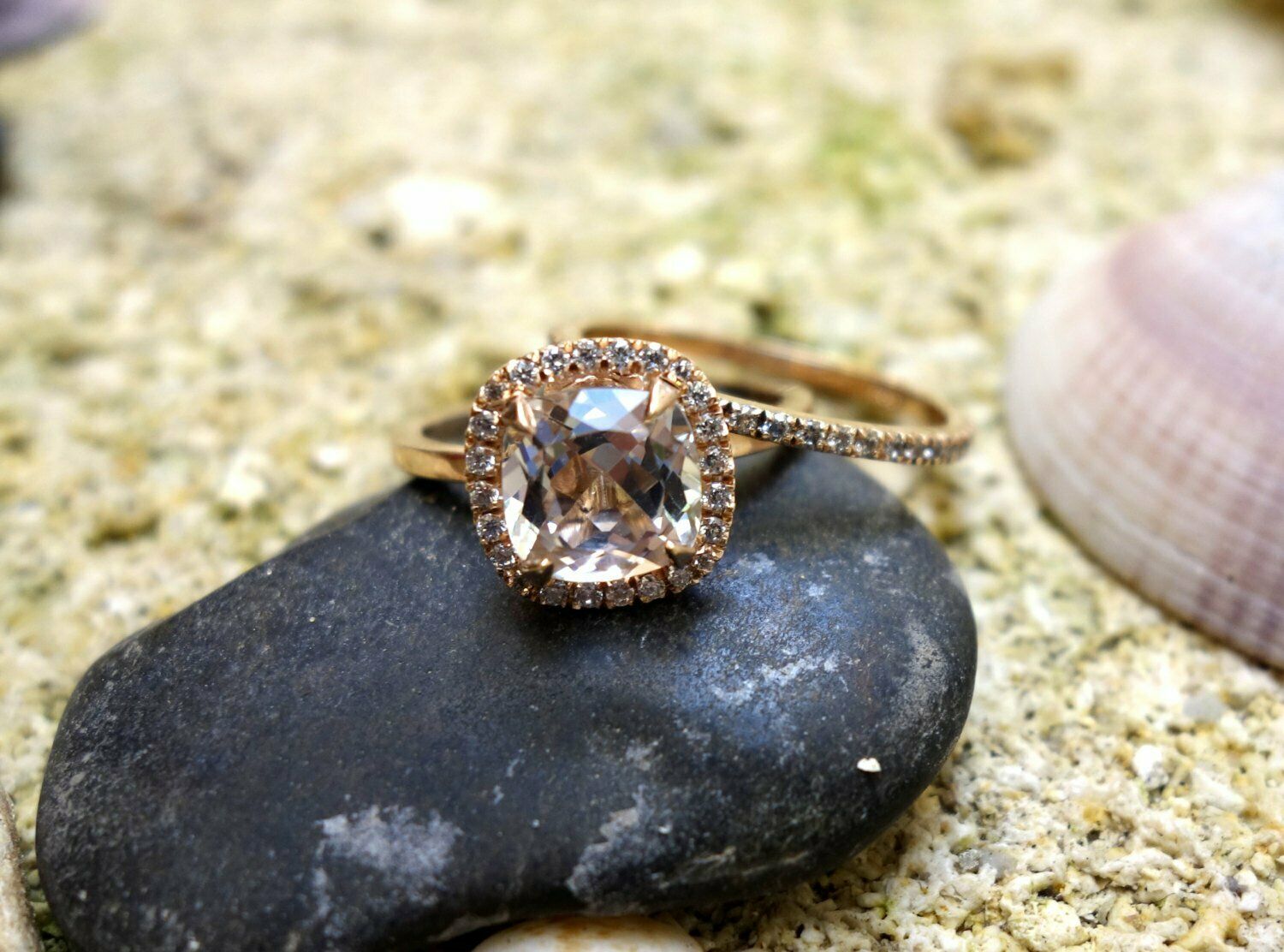 1.2ct Cushion Cut Peach Morganite Engagement Ring 14k RoseGold Finish Bridal Set