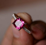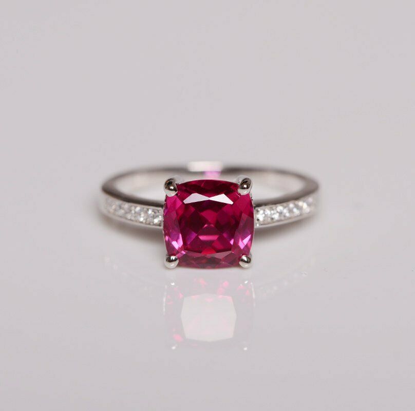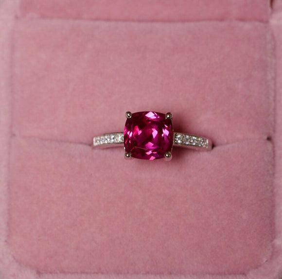 1.2ct Cushion Cut Pink Ruby Engagement Ring 14k White Gold Over Accent Solitaire