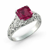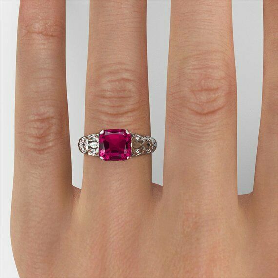 1.2ct Cushion Cut Pink Sapphire Filigree Engagement Ring 14k White Gold Finish